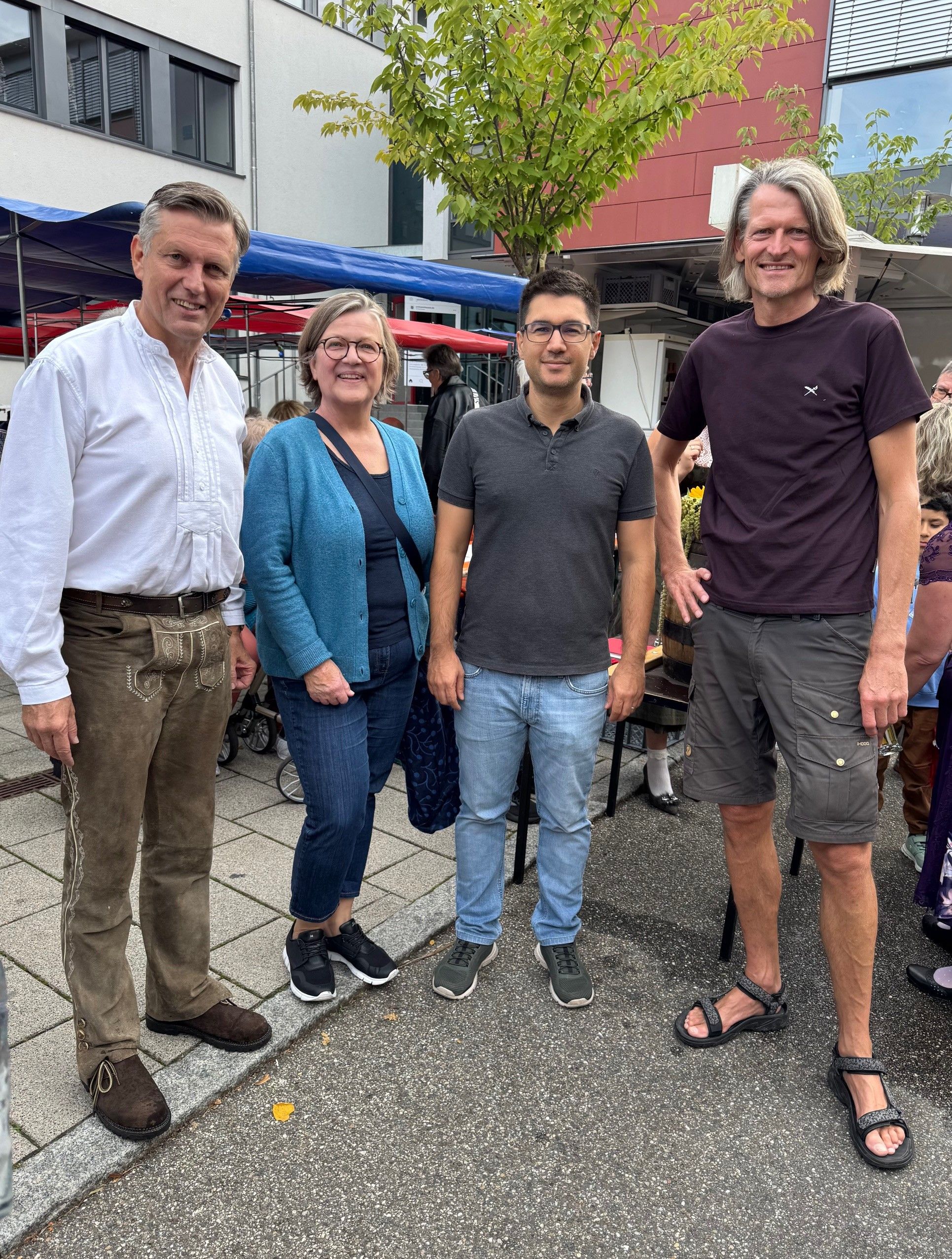 Bürgermeister Marcus Kohler, Martina Glees-Brück (2. Vorstand), Tayfun Tok und Roland Schumacher (Schatzmeister)Die Erdmannhäuser Grünen freuten sich sehr, dass Landtagsabgeordneter Tayfun Tok die Eröffnung des 43. Erdmannhäuser Straßenfestes in seinen Terminplan